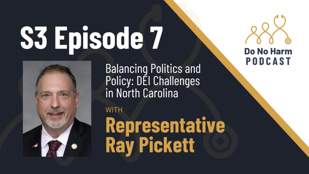 In Episode 7 of Season 3 of the Do No Harm Podcast, hosts Ian Kingsbury and Scott Centorino engage with North Carolina Representative Ray Pickett in a compelling discussion on the intertwining of politics, higher education, and healthcare. As North Carolina navigates the aftermath of a severe storm, the focus shifts to the contentious role of Diversity, Equity, and Inclusion (DEI) policies in universities and their broader impact on healthcare. Representative Pickett shares insights on the Board of Governors’ efforts to reform DEI policies and the challenges of maintaining neutrality in educational institutions. The episode underscores the emotional and divisive nature of DEI and gender medicine issues, highlighting the critical role of public engagement in shaping legislative processes.