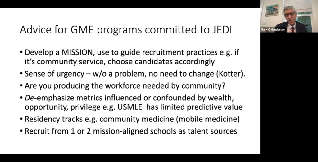 “Try to light some fires,” he said, urging residency programs to follow their (DEI-centric) missions.