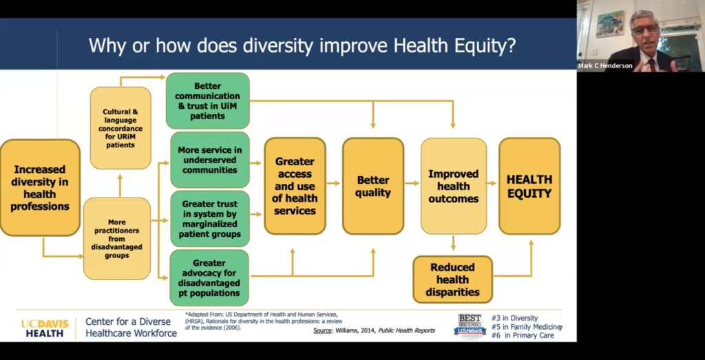 This behavior isn’t new from Henderson and UC Davis: Do No Harm previously reported on a 2022 webinar in which Henderson, discussing UC Davis’s admissions process, stated that the “overrepresentation” of Asian physicians is addressed through an “institutional diversity and inclusion policy that explicitly and publicly states our priorities for recruitment based on the statistical gap between California’s population and the physician workforce demographic of underrepresented groups.”